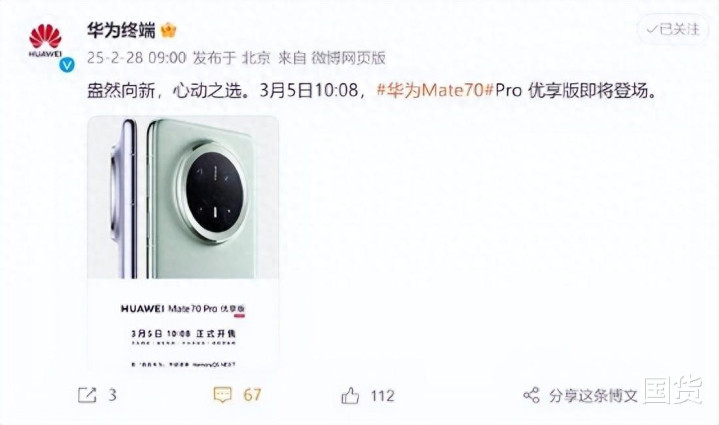 在高端智能手机市场竞争白热化的2025年,华为再出“奇招”——3月5日,Mate70 Pro优享版正式开售。这款机型以6199元起售,较标准版直降300元,却保留了旗舰级影像、通信与HarmonyOS NEXT系统等核心配置。降价背后的取舍与野心,折射出华为对市场格局的精准掌控。